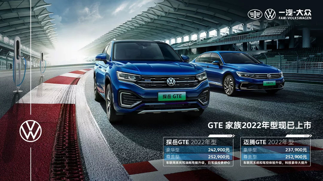 一汽-大眾GTE家族2022年型正式上市,增配車聯網及多項裝備