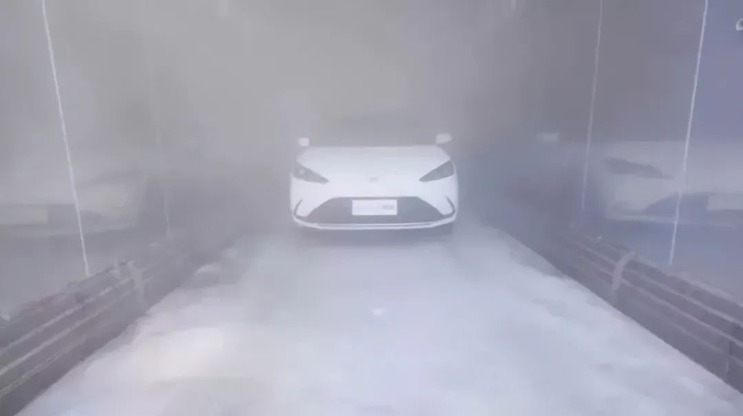 在擊打過后,則要通過鹽水飛濺路段并在32攝氏度左右的條件下對車輛進行鹽水噴霧,對鈑金下看不到的角落進行鹽水的侵蝕。之后,車輛進入環境艙,在23攝氏度/50\%左右濕度的條件下停放12h,然后在50攝氏度/飽和濕度的條件下停放8h,歷經石擊、高環、鹽堿、冰火、干濕的“魔鬼測試”。