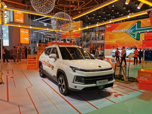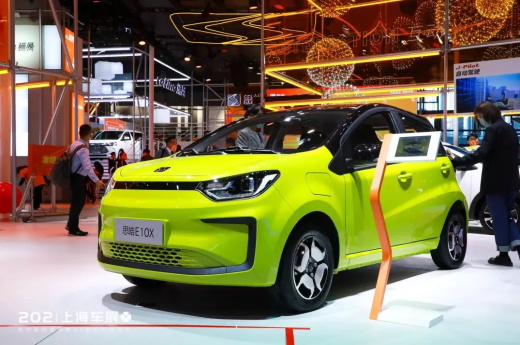 3月28日,江汽集團“智美”純電潮車思皓E10X正式上市,圖為該車型在2021年上海國際車展上展出。