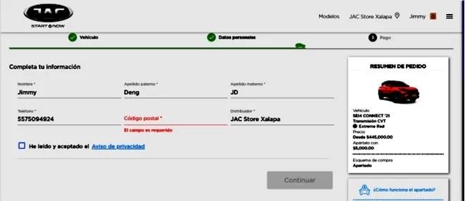 在疫情防控形勢下,JAC在墨西哥按照公司數字化營銷策略,持續推行數字化營銷平臺及體驗的建設,除了本次直播發布所采用的線上VR體驗,更建設完成消費者官網注冊、積分商城、網絡商城、售后預約、線索管控平臺、數字化銷售報表系統等。消費者賞車、留資、購車、付款、信貸、注冊、車生活、售后等全生命周期體驗均可在JAC官網一站式完成。