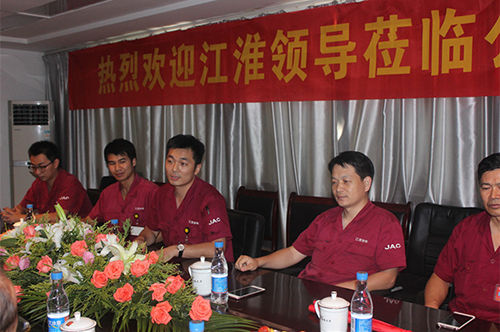 2016年8月26日下午16點,安徽江淮汽車輕型商用車制造公司機關(guān)第三黨支部供應(yīng)商管理部部長陳勝、業(yè)務(wù)主管李懷文、綜合管理部企業(yè)管理屈友江等10位領(lǐng)導(dǎo)蒞臨安徽大洋進行指導(dǎo),并給我司一線員工”送清涼“。