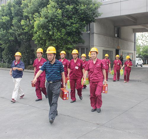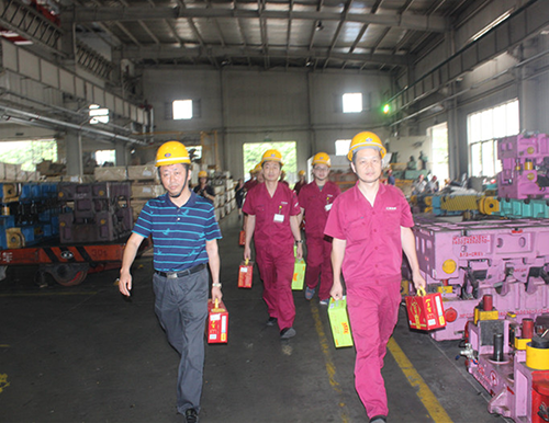 在安徽大洋倪峰副總經(jīng)理和李平總助的陪同下,陳勝部長一行人給正在工作崗位上辛勤勞動的一線人員送去降溫飲品。