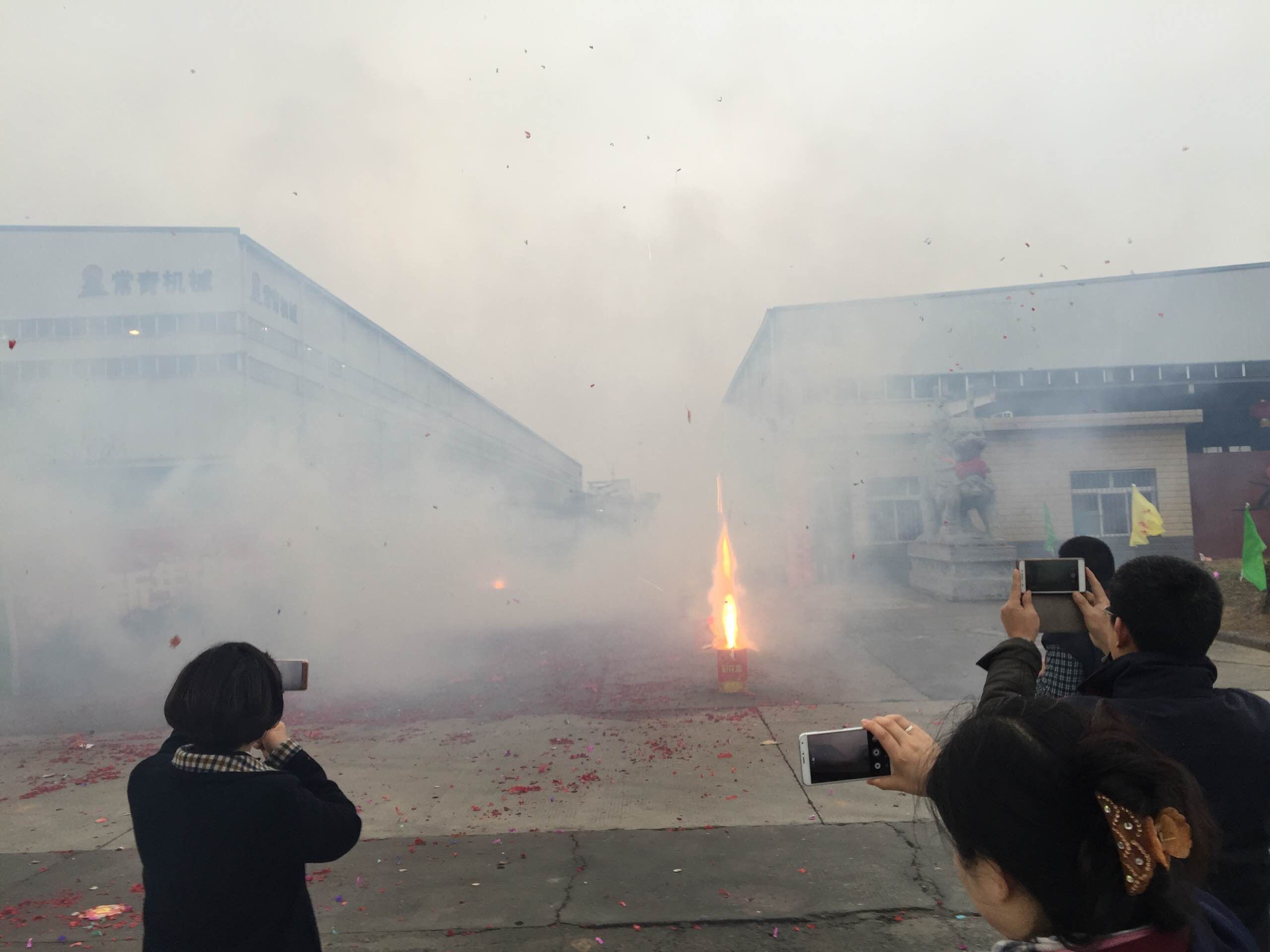 4、8點58分,在這千鈞一發時刻,各分廠同時點燃鞭炮與煙花,一時間燃放的鞭炮猶如天女散花,