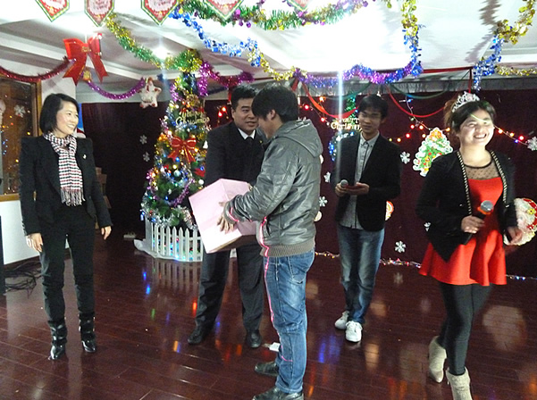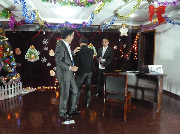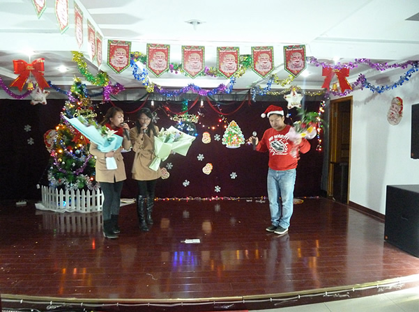 “歡樂圣誕,相約大洋” 。20111224日晚上,我們敬愛的董事長及總經理等高層領導與全體員工一起度過了一個激情快樂的平安夜。 晚會之前,我們管理部年輕的同事們在公司前輩的指導下精心地策劃了這場晚會,而且集思廣益,參與節目從歌舞到小品,由朗誦到原創快板,內容豐富精彩。這一次的晚會,不僅僅是由管理部來具體承辦,而且邀請了本部及分部全體員工和合作伙伴中許多有才藝的、特長的員工參與進來,一起譜寫出一曲青春的樂章。在此次晚會上,可以看到許多員工的奇思妙想。在員工入場時,每位員工都隨機收到我們提前準備的抽獎號牌,號牌由正券和副券組成,抽獎時憑副券領取獎品。